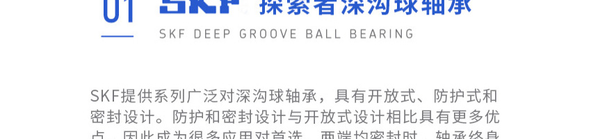 SKF深溝球軸承是一種儀器器件,有開式、雙面帶密封圈,帶密封的軸承在外圈上開有可裝密封圈或防塵蓋的溝槽,適用于高轉速甚至極高轉速的運行。